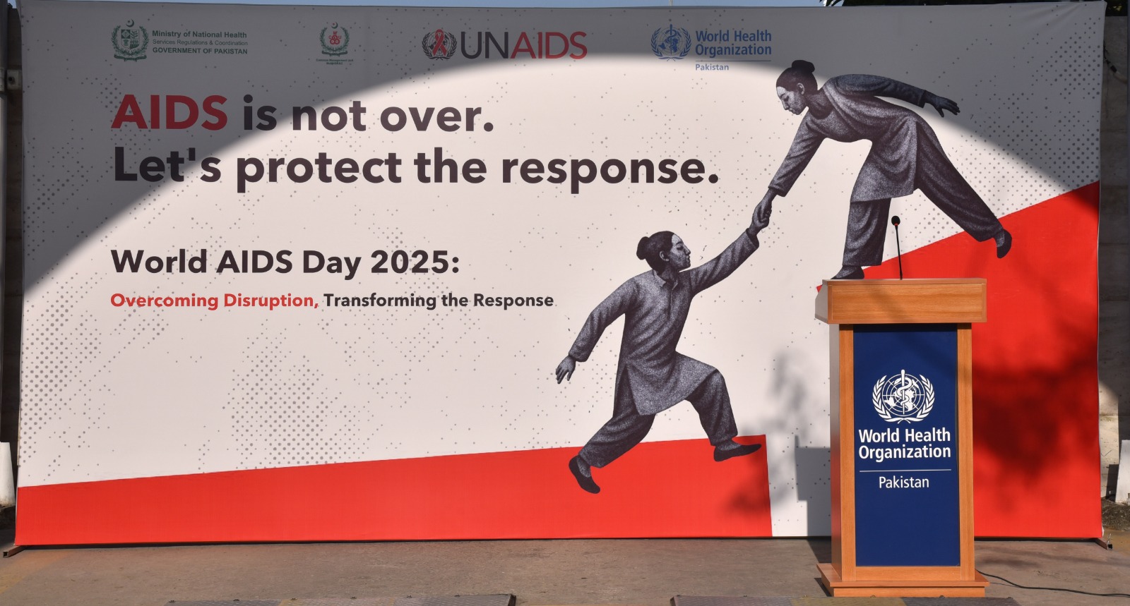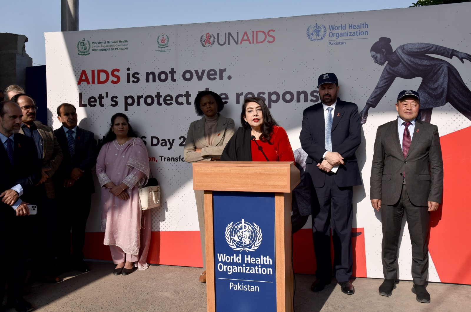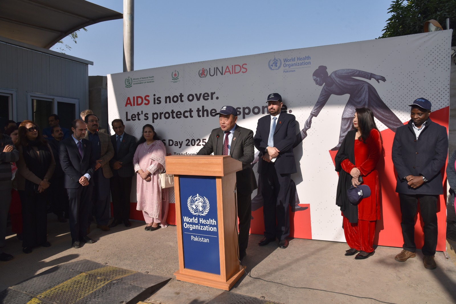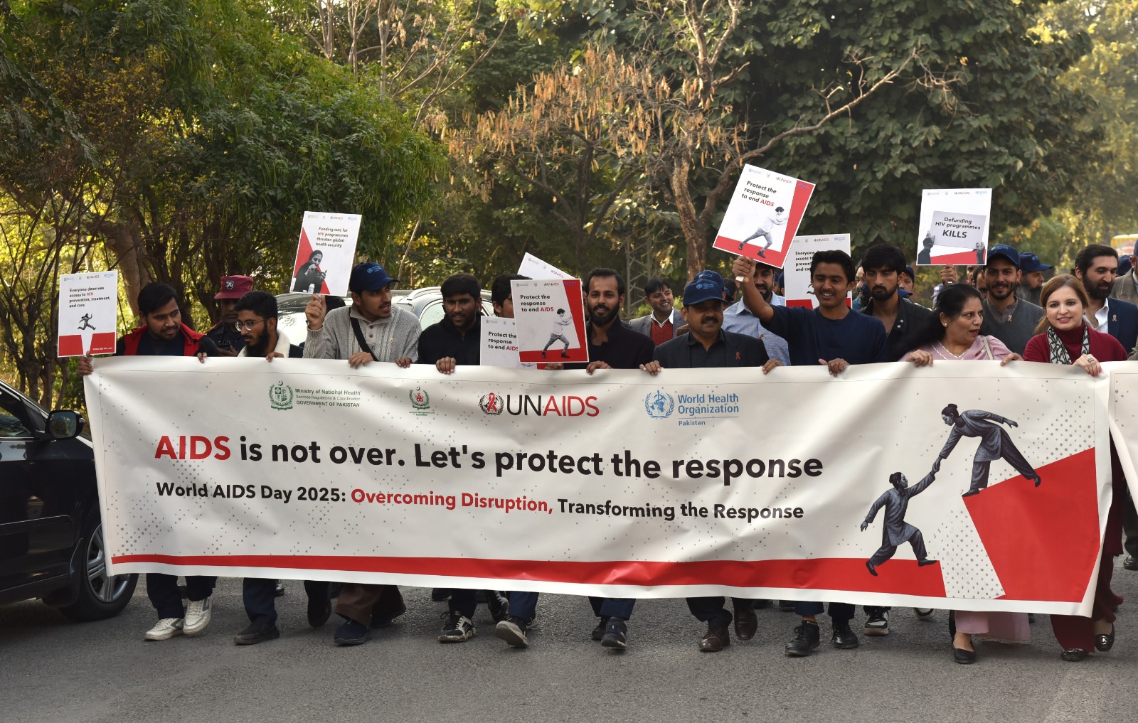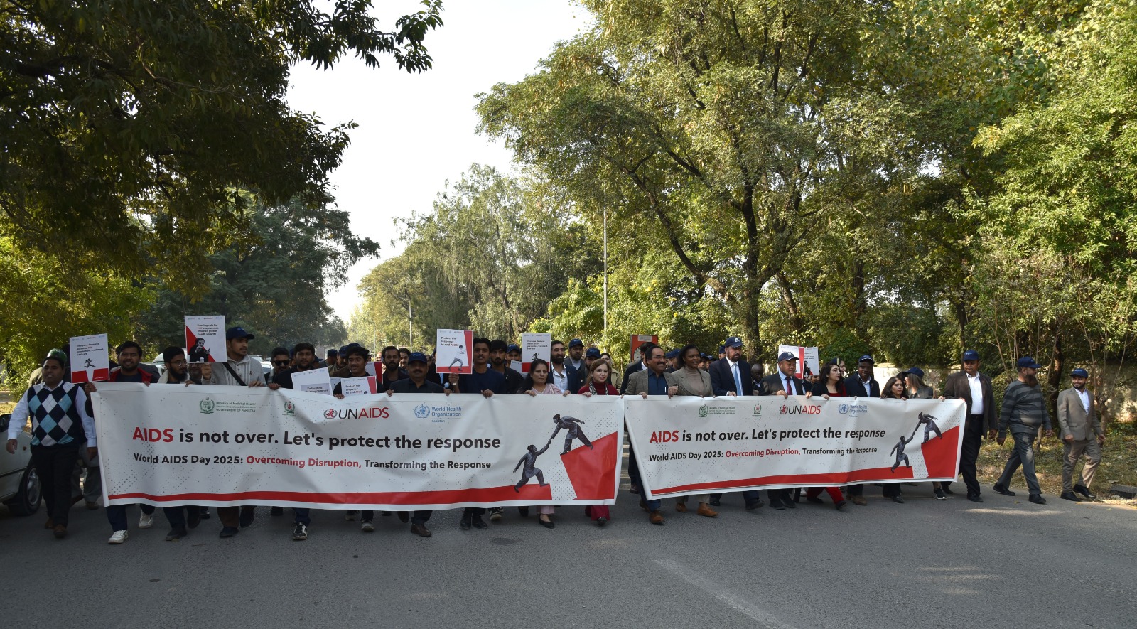 The walk brought together partners, stakeholders, and community members to show solidarity and highlight Pakistan’s commitment to ending the HIV epidemic. Senior officials, including the Director General Health (Ministry of National Health Services, Regulations & Coordination), the Deputy National Coordinator-CMU, the WHO Representative (WR), and the UNAIDS Country Representative, joined the event, reaffirming strong leadership and support for the national HIV response and to urge collective and individual action against a public health threat affecting 350,000 people in Pakistan – 80% of whom are unaware of their HIV status.