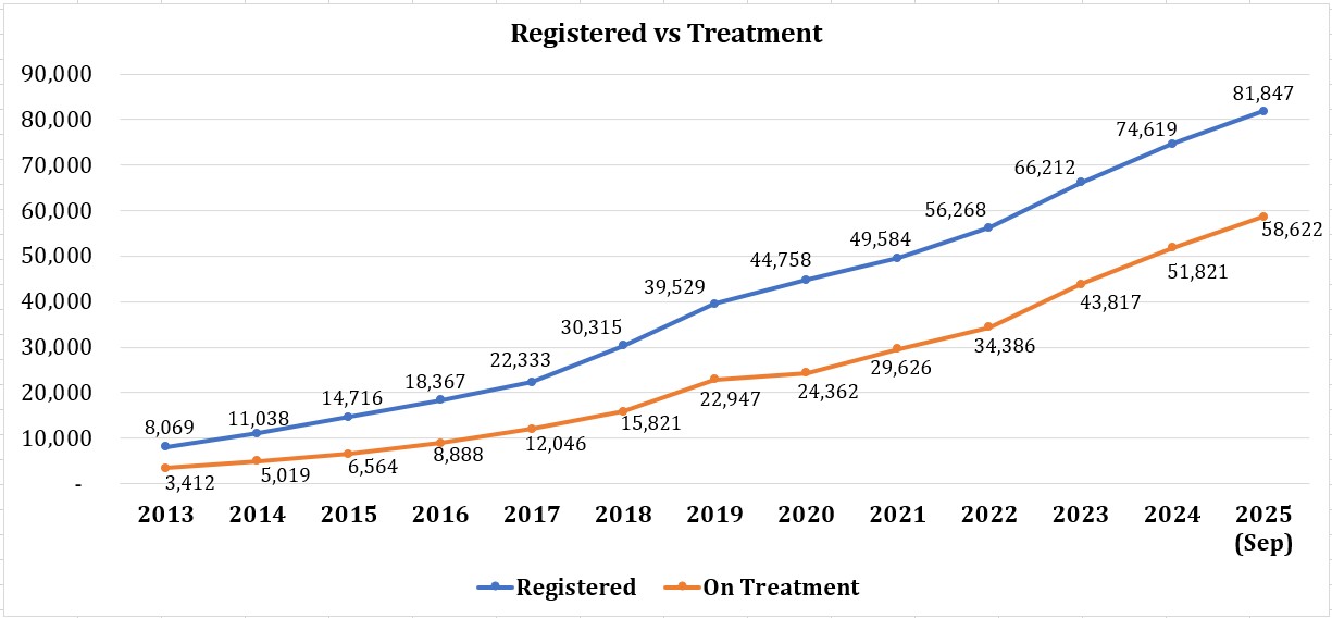 ARV’s are provided to all patients free of cost from these Treatment Centers.